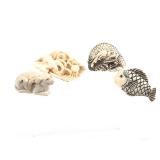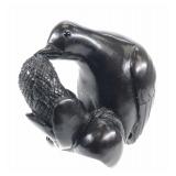 - 2629 VINTAGE JAPANESE HAND CARVED WOOD NETSUKE FISH FIGURINE