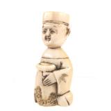 - 2556 JAPANESE IVORY CARVED BASKET MAKER NETSUKE FIGURINE