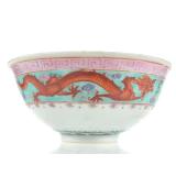 - 2563 VINTAGE CHINESE HAND PAINTED PORCELAIN DRAGON RICE BOW
