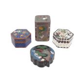 - 2571 4PC VINTAGE CHINESE MINIATURE CLOISONNE PILL BOXES