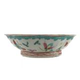 - 2586 ANTIQUE CHINESE PORCELAIN TURQUOISE FAMILLE ROSE BOWL