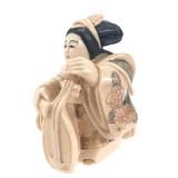 - 2599 JAPANESE IVORY HAND CARVED GEISHA PLAYING OKIMONO