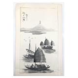 - 2602 SIGNED HONG KONG SAMPAN ON RIVER INK ON SILK