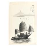 - 2603 SIGNED HONG KONG SAMPAN ON RIVER INK ON SILK