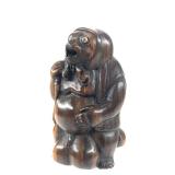 - 2607 VINTAGE JAPANESE HAND CARVED WOOD NETSUKE MONKEY FIGURINE