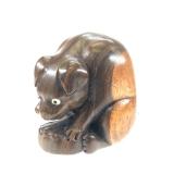 - 2608 VINTAGE JAPANESE HAND CARVED WOOD NETSUKE DOG FIGURINE