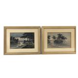 - 2637 2PC VINTAGE CHINESE INK ON SILK LANDSCAPE PAINTINGS