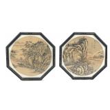 - 2617 2PC VINTAGE CHINESE SILK EMBROIDERY LANDSCAPE PORTRAIT