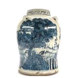 - 2649 VINTAGE CHINESE EXPORT BLUE & WHITE TEMPLE JAR