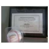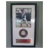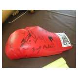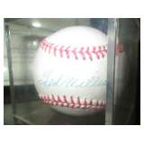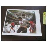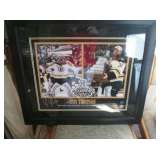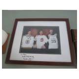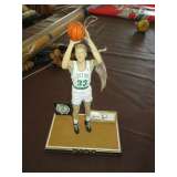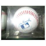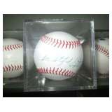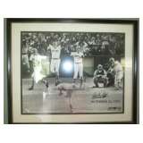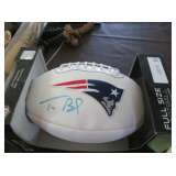 A Sports Memorabilia Collector's Dream - Baseball, Football, Hockey, Basketball Items featured here include a signed photo of the 1975 Carlton Fiske homerun, a signed Nolan Ryan Express to Cooperstown 7 No Hit Games Montage with commemorative game tickets. Signed Tom Brady Autograph Football, John Hannah Signed Alumni Photo Card & a signed Troy Brown Super Bowl 38 Photo, Larry Bird Signed Cold Cast Faction Figurine, Jo Jo White Signed Celtics Basketball. For Hockey we have a team-signed Bruins hockey stick, and a Terry O'Reilly signed action photo & ball cap.
