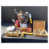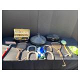 Here are just a few of the items included in this sale: Kenmore French Door Bottom Freezer Frigidaire Upright Refrigerator/Freezer Fisher & Paykel Washsmart Washing Machine GE Electric Dryer Roper Upright Fridge/Freezer Hoover Steam Vac Spin Scrub Antique Oak Round Table Stained Wood, Bedside Potty Painted Wood, Bedside Potty Repurposed Old Ironing Board Bench 4 Wooden Kitchen Chairs Reclining Loveseat Electric Flexsteel Recliner Power Recliner by Unknown Maker Repainted Rocking Chair Slatted Wooden Bench Two White Storage Units and a Framed Mirror Chair, Table and Magazine Rack Like New Office Chair Rolled Arm Sofa by Star Furniture Futon Basketballs - Two Autographed Autographed Baseball, M&M Collectibles, Coke Bottles & More Kyle Crossing Railroad Crossing Arm Aggie Items and Maroon Gibson Dishes Texas A&M Seats and Clothing All Things Aggie Cuff Links, Tie Clips and More Men's Watches Vintage Singer Sewing Machine Antique Singer Sewing Cabinet Vintage and Newer Cameras - Argus and Kodak Bendix Radio, Barometer, and More Elgin Mantle Clock Antique and Vintage Pictures and Frames Train Art and More Nobility Plate Eight Piece Set Silver Plate Items Insta Pot, Air Fryer and Other Small Kitchen Appliances KitchenAid Pots and Pans Plus Vintage and Newer Kitchen Painted Glass Hanging, Terra Cotta Temp Gauge, etc Lamp, Barometer and More Brass Fire Place Screen Heaters, Fans and a Diffuser Cleaning and General Household Camping Items Four Fire Extinguishers Three Piece Cement Aggie Bench Children’s Metal & Wood Bench and Outdoor Decor Two 2x4 Benches Adirondack Chair Plus Large Wind Chime and Rain Chain Cement Bird Baths John Deere Riding Lawnmower D125 Craftsman 21” Mulcher Lawn Mower Electric Poulan Chain Saw & Weed Eater Blower Echo Weed Eater and Ryobi Blower Planters and Plants Garden Wagon Vintage Wagon Wheels and Plow Tips Yard Tools and Brooms Post Driver, Hose Reel & Gorilla Cart Saws and More Chicago Electric 10” Compound Slide Miter Saw Power Tools - Skil, Chicago Electric, Craftsman Power Tools - Ryobi, DeWalt, Black & Decker, Etc Dolly, Step Ladder, Large Metal Mailbox and More Nuts & Bolts Storage, Staple Gun, Drill Doctor, Etc. Various Tools, Lighting and Electrical Outlet Reel Shelves, Lighting and Home Improvement Tools, Toolbox and Extension Cord Pump with Intake and Out Hoses Large Mystery Lot of Home Improvement Items and more!