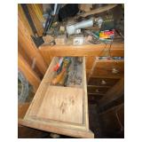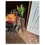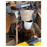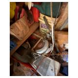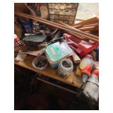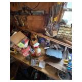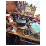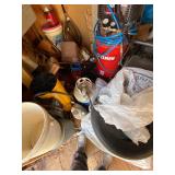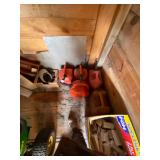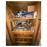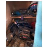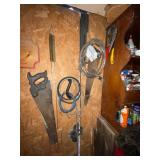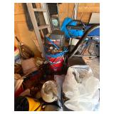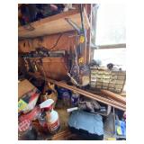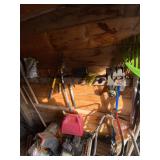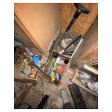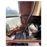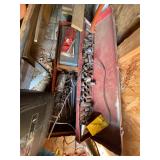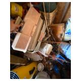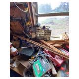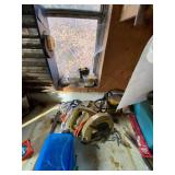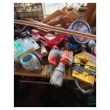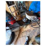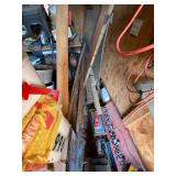 Tools: Craftsman air compressor, Dolly, Alum ladder, Propane torpedo heater, Alum extension ladder, Saw horses, Cordless drill, Sockets, Wrenches, Ratchets, Pliers, Hand tools - Hoes, Rakes, Shovels, Forks. Craftsman radial arm saw, Kerosene heater, Scroll saw, Hardware, Sears radial arm miter saw, Pro Tech band saw, Table saw, Cement tools, Pry bars, Router table, Compound miter saw, Ramps, Lumber, Several board feet of hobby lumber