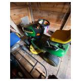 Lawn Equipment: John Deere D105 riding mower, Craftsman snowblower, Craftsman chainsaw, Dump cart, Toro push mower, Gas cans,