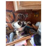 Households: Vintage Crocks, Washer, Dryer, Vintage alum cooler, Pedestal oak table, Flat screen T.V., Electric stove, GE Refrigerator, Oak hutch, Safe, Desk, Curio cabinet, Indian figurines, Records, Piggy bank, Canisters, Metal detector, Helmets, 3 burner propane cooker,