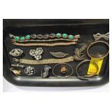 Some of the finest custom made rings we have ever had from a single estate! Many heavy sterling chains, bracelets, and rings. Antique Ring Mandrels! Numerous trays of costume jewelry to start off the catalog!