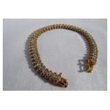 A 14 KT Gold 28.4 DWT Gucci Link Chain with (7) 20 Pt. Round Diamonds every 3 links A 14 KT Gold 27.85 DWT Gucci Link Bracelet