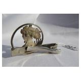 A Sterling Dior Tie Bar with cut-out Walking Liberty Half Dollar