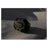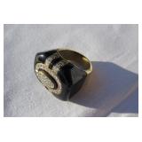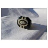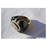 An 18 KT Gold 18 DWT Black Onyx and Diamond Ring with 1.6 CTS in Diamonds