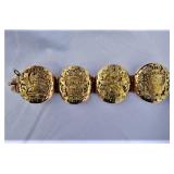 An Incredible 99 DWT Mayan Design Tri-Color 18 KT Gold Bracelet