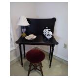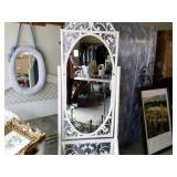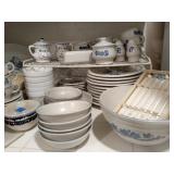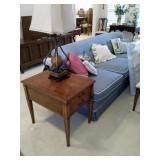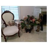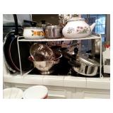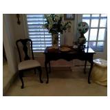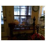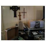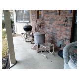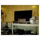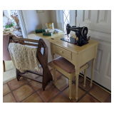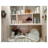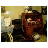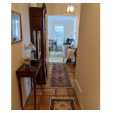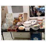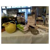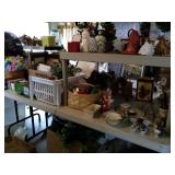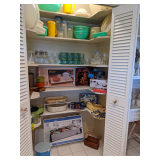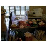 This house is filled with traditional pieces and accessories. Living room: contains a ladies writing desk and chair, 2 victorian chairs, 2 marble top end tables, vintage Packard Bell console record player, assorted traditional end tables, small writing table and chair, 2 nice upholstered arm chairs, drop leaf game table, milk can, 60” visio flat screen tv and wall mount, sofa, long fabric bench, round piano stool, large oriental vase w/ silks, marble top coffee table and end table, tall brass candle stands and several lamps. Hall: contains vintage singer sewing machine in cabinet, pretty grandfather clock, sofa table, quilt rack and pictures… Bathroom: contains purses and handbags, hair dryer, curling irons and more… Office: contains a roll top desk, office chair, vintage dress makers form, loads of linens, sheets, towels, comforter sets, quilts, pillows, blankets, tablecloths, fabric, sewing items, Kitchen: contains boxed warming tray, knife sets, mandolin, bundt pan, triple buffet server and loads of Tupperware, There is a Pfaltzgraff set of dishes, serving dishes and pyrex, hand mixer, blender, corning ware, cake pans and cast iron pans, colanders and teapots, canisters, nice selection of creamers and small pitchers, as well as mugs and glass sets. There is also a very nice mid century modern Arthur Umanoff wrought iron table and chairs by Salterini. Dining Room: Collection of 3 piece plate, cup and saucer sets, 2 punch bowls, sliver plate, hand painted dishes, cut glass, cranberry glass and more. There is a wine rack with detachable tray top, nice dining table with 2 leaves and 6 chairs. There is also a jewelry table with costume jewelry. Den: has a nice leather recliner, rattan square coffee table, sofa table and 2 side tables, pretty traditional chair and ottoman, wooden high chair, electronics, binoculars, Smith Corona typewriter, vintage projector, cds,cds,cds, books and a selection of childrens books, encyclopedias,toys and games, wall art and pictures. There are 2 accordians , a Rivoli Deluxe with case and a Crucianelli with case and roller bag. Both are in excellent condition. We also have a trumpet and a ukulele. Washer, dryer and small freezer Garage: holds more furniture, a wicker headboard, chair and standing mirror, an armoire, mattress and box spring, nice wood bench, hope chest, and small tv stand, small wheel chair and new walker, hunting cloths and camping blankets. There are some tools, Dewalt drill, socket sets, hand saw, gardening supplies shelving, hedge trimmers, tool bench, vice, folding chairs, shelving, cabinet, holiday décor, outdoor iron love seat, 2 side chairs, and end table, other outdoor benches, planters and more….