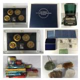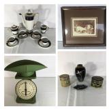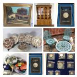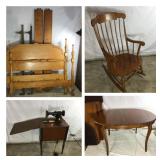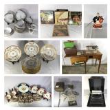 The family historian lived HERE! Antiques, vintage, and almost modern in a eclectic collage. There are typewriters, sewing machines, an accordian, artwork, Limoge china, Silk kimono, jacket and shoes, coins, china cabinet, vintage purses, antique scale, vintage baby clothes, and more!