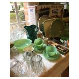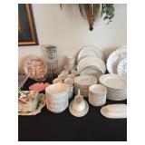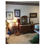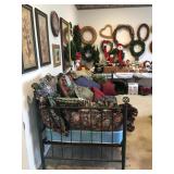 Antiques: bedroom suite-bed-mirror dresser - 2 night tables, chairs, wardrobe, oak drop leaf table, Mission Oak desk, stools, scales, advertising items, Jars & milk bottles, green handle kitchen ware. Fireking Jadite, depression glass, Cane bottom chairs, treadle sewing machine, Quilts, mixing bowls, wood high chair, butter churn, table lines Furniture: Ethan Allen dinning room table w 8 chairs, sideboard, loveseat, desk chair, lamp tables, round kitchen wood table & 6 chairs, wing back chairs, set 4 ladder back dining chairs, large metal room divider, Oriental carpets (one large 9x13), chair & ottoman, cabinet, bookcase cabinet, tv trays, iron frame day bed, Wall mirrors, table lamps, upright freezer, small fridge, bar stools, sewing machines Household: Books, Kitchen Aid mixer, Johnson Bros china, Xmas china, Bluebonnet paintings, Chickens & Roosters, Flatware, Silverplate, Deer Mounts, Steins, Dolls, Cameras, Sewing fabric & notions, Craft items, Signed & numbered framed prints, Linens, Records, Games & puzzles, Baskets, Office supplies, Silk florals & plants, Cookware & Bakeware, small appliances, Cookbooks, Paperweights, Nutcrackers, Christmas Men & Women's Clothes: Vintage Western Men Shirts, Levis & jeans, shoes, hats, belts, purses, jewelry Garage items: tools, garden tools, flower pots, benches, patio chairs & tables, rocking chairs, plant holders, gords, lawn mower, hand tools |