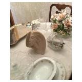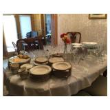 Mackenzie Childs stools and benches Tiffany style lamps Harp-based table Beautiful nightstands Beautiful dresser tallboy beautiful china China hutch Buffet Wing back chairs Round 3 foot table Hinged coffee table White swivel chair White loveseat White couch Beautiful vase Outstanding wall art Sony flat screen TV Samsung flatscreen TV Very cool globe clock Dining table with chairs China hutch Various area rugs And so much more.