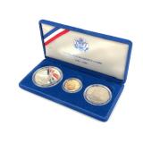- 1018 1986 U.S. LIBERTY COMMEMORATIVE GOLD & SILVER 3 COIN PROOF SET