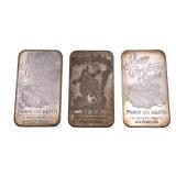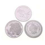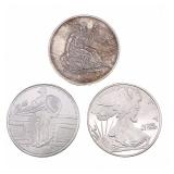- 1039 LOT OF 3 ASSORTED 1 TROY OZ .999 SILVER BULLION