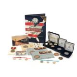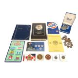- 1517 LOT OF 4 BRITISH COIN SETS, TOKENS, & MEDAL