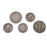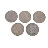 - 1046 LOT OF 5 ASSORTED EARLY U.S. SILVER COINS