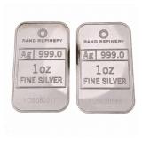 - 1047 LOT OF 2 1TROY OZ .999 FINE SILVER BARS