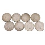 - 1528 LOT OF 8 1964 U.S. KENNEDY 90% SILVER HALF DOLLARS