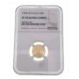 - 1005 1994-W AMERICAN GOLD EAGLE $5 PCGS PR70