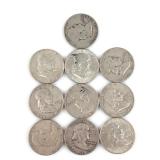 - 1527 LOT OF 18 ASSORTED U.S. FRANKLIN HALF DOLLARS