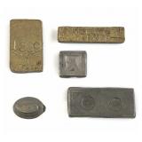 - 1591 LOT OF 5 VINTAGE REPLICA COPPER & ZINC COINS BARS