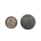 - 1593 LOT OF 2 1805 IRELAND KING II PENNY & 5 REIS 1796 PORTUGAL MARIA I DEI GRATIA