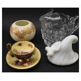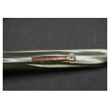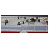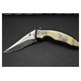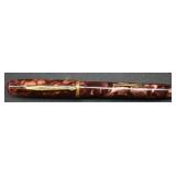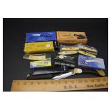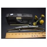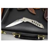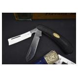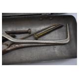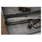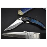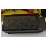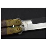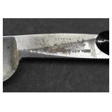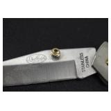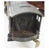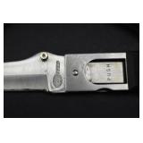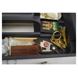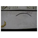 2 Art Deco Oak Server 53x18.5x37 3 Oak Wardrobe 33x17x70 4 Jones Treadle Sewing Machine w/ Cast Iron Base In Excellent Condition 37x18x31 5 3 Drawer Oak Chest 38x19.5x28 6 Oak Hall Tree 71" Tall 7 Metal Kitchen Cabinet In White 30x20.5x72 8 Onkyo Stereo Rack System w/ Compact Disc Changer R1, Audio Video Control Amplifier, Stereo Cassette Tape Deck, Quartz Synthesized FM Stereo / Am Tuner - Plus Turntable by JC Penny Model 683-1988, Original Onkyo Speakers 9 Free Standing Dresser Top Oak Mirror 24x14x32.5 10 Vintage Fishing Lures - Hula Popper, Pike 11 Vintage Fishing Lures - Jitterstick Fred Arbogas, Barracuda St. Pete, Jitterbug Fred Arbogas 12 Vintage Fishing Lures - Kentucky Bait Co., Shakespeare, Etc. 13 Vintage Fishing Lures - Hi-Yo and Jitterbug 14 Black Powder Jukar Percussion Pistol 055518 Spain 15 Black Powder Percussion Pistol 27709 16 Iver Johnson's Arms & Cycle Works Revolver 17 Daisy .177 Cal BB SA Pistol 18 India Dagger w/ Leather Sheath 19 G.C.Co. Japan Pro Throw Knife w/ Leather Sheath 20 Old Hickory Tru Edge Ontario Knife Co. Wood Handle Knife w/ Leather Sheath 21 Original Wurfmesser Hugo Koller Solingen Germany Knife w/ Leather Sheath 22 Pistol Table Lighter and Cigarette Case 23 Zippo Advertising Westinghouse Lighter w/ Original Box 24 Waterman Paris and Reflections Pens 25 Decorated Wood Box w/ Playing Cards 26 Cigar Box w/ Vintage European Souvenir Scene Photograph Packs 27 Original Enders Benzin Baby Petrol Gas Stove Made In Western Germany 28 Vintage Cameras and Opera Glasses - Brownie Hawkeye, Univex Model AF-4 29 Vintage Photographs Mostly Wedding 30 Model Airplanes 31 Gilbert Erector Set 32 American Flyer Train Engine and Cars 33 Train Track, Transformers and Accessories 34 Buckeye Champion Line 10 Pins Bowling Set 35 Copper Coal Scuttle 36 Fruit / Wine Press 37 2 Wood Coca Cola Bottle Crates 38 Waltham 31 Day Chime Regulator Key Wind Clock 39 Assorted Linens 40 Ladies Hankies, Gloves, Aprons, Etc. 41 Patch Work Quilt 75x72 42 The Heirloom Collection China 42 Pieces 43 Etched Amber Bohemian Glass Pitcher and Tumbler Set 44 Fiesta Pitcher 45 Assorted Pitchers Including Hall 46 Plaster Rabbit Bank - Crack 47 Nemadji Pottery Vessels 48 Blue & Gray Decorated Stoneware 49 Branch Cane and Walking Stick 50 Tribal Earth Didgeridoo Musical Tube and Other 51 Lead Glass Window Hanger 52 2 Lead Glass Decorative Panels 53 Floral Pattern Hooked Rug 54x71 54 Motorcycle Leatherwear - Wilda, Wilsons, Interstate 55 5 Pairs Leather Boots 56 Mustang Motorcycle Seats - New In Box for Yamaha 650 V-Star 57 Yamaha 5BN-2 Exhaust 58 Kakadu Traders Australia Duster Size XL 59 3 Cowboy Hats - Stallion by Stetson, Henschel 60 Carved Black Bear Log 61 Waffenfabrik Mauser A.G. Oberndorf a N Butcher Blade Bayonet w/ Scabbard 62 WWII Japanese Military Fighting Knife Marked G.C.Co 375 Japan w/ Sheath 63 WWII German Nazi Dagger (Swastika Symbol Broke Off) Blade Marked Grawiso Solingen Ges. Seschu*zt 64 German Military Dagger 65 ERN Solingen Germany Push Button Automatic Knife 66 Wood and Brass 7" Lock Blade Knife w/ Sheath 67 Stanley Wood Workers Hand Plane 68 Stanley No.45 Combination Plane w/ Cutter Set 69 Atkins Raker Gauge for Cross Cut Saws 70 Cast Iron Pans and Heart Shaped Dutch Oven - Wapak, Country Cottage by Ultrex 71 Wood Bobbins / Spools 72 3 Bennington Insulators 73 Vintage Fishing Lures - Heddon Crazy Crawler 74 Vintage Fishing Lures - Shakespeare, Jitterbug Fred Arbogast 75 Vintage Fishing Lures - Shakespeare 76 Lead Glass Shade with Butterflies - Teardrop Panels 77 MJ Hummel Chapel Time Statue with Original Box 78 MJ Hummel Goebel Germany 1990 Century Collection Welcome Spring Figurine with Original Box 79 MJ Hummel Goebel Exclusive Edition Hummel Club 1993 A Story From Grandma with Original Box 80 MJ Hummel Goebel 1997 Century Collection Fond Good-Bye Figurine (small chip) with Original Box 81 Porcelain Cooler w/ Dog & Pheasant Hunt Scene Madeira 82 Kaiser Germany Embossed Floral Design Vase 83 Crackle Glass Pitcher 84 Fenton Satin Glass Vase 85 Lenox Winter Garden China - Winter Rose, Royal Fig and Camellia 86 Amberina Thumbprint Glassware 87 Boehm Porcelain Rufous Hummingbird w/ Fuchsia Selasphorus Rufus Statue (some damage) 88 Boehm Porcelain Bush & Quayle Figurine 89 Lenox Angels of Light Candlesticks 90 Villeroy & Boch Heinrich Russian Fairy Tale Collector Plates 91 Sterling Silver Nut Dish - Approx. Weight 5.19 Troy Oz. 92 3 Sterling Silver Tooth Pick Holders (Weighted) 93 14K Gold Ring w/ Diamonds & Sapphire 94 10K Gold Onyx w/ Diamond Chip Ring Marked B&F 95 Jennings Brothers Small Steeple Clock 96 Royal Doulton Character Mugs - Winston Churchill (cracked), Capt. Ahab and Other 97 Brass Oil Lamp 98 Wedgwood Ye Olde Town Hall Beadle Character Pitcher 99 3 Hand Painted Plates 100 Tiffany Style Lead Glass Shade On Turned Wood Floor Lamp 66" Tall Shade Dia. 21.5" 101 Ornate Cast Metal Lamp with 6 Panel Floral Decorated 102 Defries Brass Safety Lamp w/ Honeycomb Cranberry Glass Shade 103 1921 US Morgan Silver Dollar Money Clip and 1922 Peace Silver Dollar Belt Buckle 104 14K Gold 8" Bracelet w/ Gem Stones - Total Approx. Weight 12.69 Grams 105 14K Gold Rope Chain - Approx. Weight 7.66 Grams 106 14K Gold Bracelet - Approx. Weight 8.49 Grams 107 14K Bracelet w/ 14K Ribbon Charm - Total Approx. Weight 8.13 Grams 108 Assorted Costume Jewelry Pieces - Glass Bead Necklaces, Earrings, Pins 109 Glass Ball Magnifier Pocket Watch Shape Clock 110 Brass Desk Clock w/ Magnifier Back 111 Cast Metal Champion Spark Plugs Sign - Age ? 112 Cast Metal Arrow Shaped Shell Garage Sign - Age ? 113 Buckingham Cut Plug Smoking Tobacco Tin w/ Paper Label 114 Pedro Cut Plug Smoking Tobacco Tin 115 Ansonia Clock Co. Accomac Porcelain Case (Hairline crack) Floral Decorated Key Wind Clock - No Pendulum 116 As Found Porcelain Decorated Ky Wind Clock 117 Marklin HO Scale Crocodile 14301 Locomotive 118 Roco HO Scale Crocodile 13254 Locomotive 119 Roco HO Scale Steam Engine 2976 120 Roco Electric Locomotive H