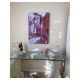 This beautiful condo is loaded with lots of goodies from the painted cottage in Collingswood, paint decorated queen bed frame, vanity and bench, French style dresser and mirror, side table, and large cabinet. Queen size bed, den print sleep sofa, wicker side chair, mahogany knee hole desk, 5 drawer chest, beautiful round off-white dining table and 6 chairs with matching cabinet. Plus round drop leaf dinette table with 2 chairs, Ming green fabric sofa and love seat. Sofa table and coffee tables, lots of cut glass and crystal items. China sets, Limoges, Nippon, B&G, Lenox, ladies clothing xl-2x, costume jewelry. Prints, paintings, TVs. Christmas decorations, kitchen cookware and so much more.
