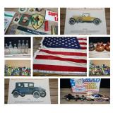 Marble Collection, Vintage Dice, Folk Art American Flag, Insulators, Vintage Bottles and more.