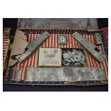 BHD Auctions LLC Presents Highlights – Large Set Brass Sleigh Bells, Military Including Bayonets, Vintage Toys – Marx Tin Ballerina Red Line Hot Wheels Barbie Dolls, Gorham Sterling Snowflake Ornaments, Swarovski Crystal Animals and Snowflake, Art Nouveau Lamp & Clock, Bronze Statues, Much More to Be Unboxed in the Coming Weeks! This is a timed auction with Item 1 ending at 7PM on Thursday March 18 and an item ending every 10 seconds there after. Pickup of items is Friday 03/19 10AM to 1PM and Monday 03/22 9AM to 10AM and 6PM to 7PM. Location 124 Primrose Alley Evans City, PA 16033. Go To www.bhdauctions.com To Bid 1 Underwood Industrial Newspaper Print Typewriter 2 Pair Bronze Indian Look Out Bookends 3 Cast Metal Maiden 2 Socket Lamp 4 Seth Thomas Clock Figural Woman 5 Key Wind Mechanical Celluloid and Tin Negro Street Dancer 6 Wilesco Made In W. Germany Steam Engine Toy 7 Marx Tin Mechanical Climbing Plastic Fireman - Working 8 Unique Art Mfg. Tin Litho Key Wind Child Riding Tri Cycle 9 Teddy Roosevelt Patriotic Decorated Photo Album w/ Early Photographs 10 Imperial German Model 98 Bayonet with Crown Stamp Erfurt #1299 On Handle 11 French Model 1866 Chassepot Bayonet w/ Scabbard 12 Short Sword w/ Brass Handle, No Markings, Metal Scabbard 13 Monarch 2151 Japan Stag Handle Sheath Knife w/ Leather Sheath 14 Vintage Coin Operated Dial Pay Telephone 15 Emerson Brass Bladed Electric Fan 16 6 Foot 6" Long Set of Brass Sleigh Bells 17 Early Double Door Adjustable Pigeon Hole Cabinet 21.5x13x55.5 18 Remington Slant Front Counter Top Store Display Case 19 Antique 2 Drawer Spool Cabinet 20 Antique Walnut Stepback 2 Piece Cupboard 21 US Blind-Stitch Industrial Sewing Machine Model 518-2 22 Deco Chrome Table w/ 1 Leaf 23 Heywood Brothers Wakefield Wicker Base Wood Top Table 24 Drafting Table w/ Industrial Stool 25 Matching Solid Mahogany Highly Carved Chairs 26 3 Legged Milking Stool / Birthing Chair 27 Set of 3 Nesting Tables 28 Cast Concrete Lawn Jockey w/ Lantern (does have wiring) 29 16 Inch Nystrom Pictorial Relief Globe on Adjustable Height Floor Model Wheeled Base 30 Framed Oil On Canvas Street Scene Signed Nandenberg w/ Certificate of Authenticity 31 Framed Black & Gold Glass Bird Scene Wall Hanger 32 Hand Made Wood Sailing Ship 33 King of The Mississippi Paddle Boat - Artesania Latina 34 Painted Metal Steam Ship 35 2 Cast Iron Pans - #10 and Lodge 36 2 #8 Cast Iron Skillets 37 2 Barbie Dolls, Clothing and Case 38 Tressy's Hair Glamour Items, 2 Barbie Dolls and Case 39 Kitty Doll w/ Accessories and Case 40 Mattel Cecil and His Disguise Kit 41 Steam Engine Toy 42 Mattel Square Dancing Twins and Music Box by Bob Routledge - Not Working 43 Swarovski Silver Crystal Lion w/ Box 44 Swarovski Silver Crystal Elephant w/ Box 45 Swarovski Silver Crystal Antelope w/ Box 46 3 Swarovski Crystal Snowflake Ornaments 47 3 Swarovski Crystal Snowflake Ornaments 48 2 Gorham Sterling Silver Snow Flake Christmas Ornaments 49 2 Gorham Sterling Silver Snow Flake Christmas Ornaments 50 2 Gorham Sterling Silver Snow Flake Christmas Ornaments 51 Cast Metal Cherub Lamp w/ Etched Frosted Glass Shade 52 Framed Black n White of Football Team 53 Antique Black n White Photograph Techumsch Lacrosse Club 54 Framed WWI Print 55 Framed Print Entitled Our Hero's Return 56 Framed Print WWI Black Soldiers "Colored Man Is No Slacker" 57 Ammunition and Arrow Head Display 58 Antique Bellows 59 Vintage Emerson Electric Fan 60 2 Drafting Sets - Dietzgen PA State University Special and Academic TS Co. Germany 61 Assorted Drafting Tools 62 Steam Punk Goggles and Safety Glasses 63 Miners Safety Helmets 64 Assorted Padlocks Including Brass Reese, Yale, Slaymaker 65 Assorted Padlocks Including Ilco, Yale, Fraim, Dudley 66 Coca Cola Bottle Openers 67 Assorted Advertising Bottle Openers 68 Wood Block Pulleys 69 Dubl-Glo Glass Christmas Tree Ornaments 70 Glass Christmas Tree Ornaments - Some Hand Painted 71 Empire Blow Mold Santa Head - Peeking Santa w/ Original Box 72 Royalite Christmas Lantern and Angel Christmas Tree Toppers 73 Art Deco Cast Metal Figural Woman Lux Clock - Marked WB 74 20 Drawer Watch Repair Cabinet w/ Flip Top - Loaded w/ Clock Accessories 75 Metal Frame Slant Front Table Top Glass Display Case 76 Pink Glass Lamp 77 Bronze Dog Statue 78 Lenox Snowflake Bud Vase and Classic Globe Vase Original Boxes 79 Lenox Console Bowl w/ Original Box 80 Ventriloquist Dolls Including Horsman 81 Fireking Jadeite Glassware - Plates, Cups w/ Saucers, Etc. 82 Assorted Kaleidoscopes 83 Lenox Christmas Ornaments 84 Battery Operated Amico Bar Tender 85 Louis Marx Tin Key Wind Mechanical Tank 86 Roy Rogers Key Wind Wild West Stage Train (Driver is missing one arm & damage to horses) 87 AMT Scale Model Ford Key Wind Promo Car w/ Original Box (like new condition) 88 Assorted Vintage Red Line Hot Wheels Cars w/ Popup Collector Case 89 WWII German Bayonet Marked w/ Crown ERFURT on Blade, 153R3B w/ Metal Scabbard 90 Early Bayonet - No Markings 91 Leather Belt and Single Gun Holster w/ Griffin 92 5 Leather Gun Holsters and Belts 93 Military Mess Kit, Canteen, Ammo Pouch, Packs, Etc. 94 8 Boxes .30 M1 Carbine Ammo - 5 Feel Like They Are Full 95 5 Boxes 410/70 Shotgun Ammo 96 Remington 30-06 Cartridges 97 Assorted Ammunition Mostly 30-06 98 9MM Luger Ammo 99 22 Ammo 100 Shot Gun Shells and 300 Savage 101 Star Wars Return of the Jedi B-Wing Fighter w/ Box 102 Radio Shack Radio Controlled 4x4 Off-Roader 103 Franklin Mint Precision Model Farmall Model A Farm Tractor - Appears New In Box 104 Batman, Superman and Wonderwoman Action Figures 105 Plexi Glass Display Case 106 General Electric TV Repairman's Case w/ Parts 107 3 Oil Lanterns, Aladdin New Old Stock Lox-On Mantles and Chimneys 108 Cast Iron Elevator Floor Indicator 109 Coleman Model 200A Lantern w/ Benz O Matic Globe 110 Coleman Picnic Stove In Pink w/ Original Box 111 Railroad Conductors Cap and McGill High Speed Changer 112 Diesel Engine Manual and Diesel Electric Road Locomotives PRR Book 1