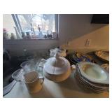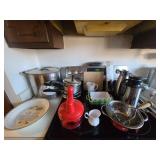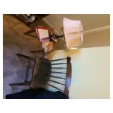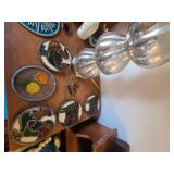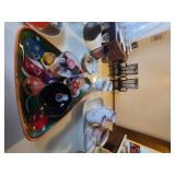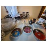 For black dining room chairs, two wooden dining chairs with wheels, Lollita love my martini martini glasses in “frosty loves to party“, billiard themed dining set Asian inspired plates, swan bowl, party platters, ceramic punch bowls, pelican glasses, salt and pepper shakers, cheese grater, floral teapot, apple tree sugar bowl, apple tree cream pitcher, coffee mugs, small dollhouse spoons, crockpot, colander, salad spinner, stainless steel stock pot 20 quarts, small bread pans, butcher knife, stainless steel crafts, candles, farm magnets, butterfly plate, ornate bird serving bowl and platters, angel portraits, uranium glass plates, uranium glass bowls, uranium glass serving platter