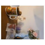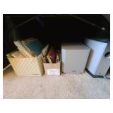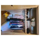 Princeton computer monitor, Dell keyboard, HP keyboard, HP Photosmart C4795 printer scanner and copier, NASA receptor, nutcracker, photo albums, Panasonic speaker system, Panasonic CD stereo system, Panasonic Walkman, ornate oblong lamp, fall floral display in basket, Grimms fairytales book, navy blue and brass lamp, see themed Picture frame, women’s clothing including blouses, skirts, sweaters, lace and cloth valances and draperies, small suitcase, small briefcase, binders, Carebear