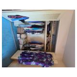 Floral print, large collection of beanie babies, large collection of stuffed animals including Disney, Winnie the Pooh, Carebear‘s, penguins, dirt devil easy push swivel casters vacuum, dress purses and clutches, men’s blazers, men’s flannels, toddler pink dress, blankets, comforters, men’s jackets, men’s fleeces, T-shirts, trucker cabs, baseball caps, men’s jeans, Tall thin wooden hutch with slatted doors, Abraham Lincoln plaque, the USS constitution figurine, inference booties, children’s genuine deerskin slippers, Clairol hot rollers, stapler, hair care organizer, gardening 3-D picture, weight watchers scale, daredevil razor swivel steering vacuum, Mickey Mouse club commemorative plate