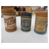 JAPARED Cylinder Music Box 1870, Plays 8 tunes B. H. ABRAMS Smallest Musical Cylinder Box, 6 Tunes 1880 Cylinder Music Box Plays 8 Tunes, 1850-1860 EDISON Wax Cylinder Music Player (No horn) 38 Wax Cylinders PolyPlane or Synphone Disc Music Box 1820-1878 6 Musical Discs B. H, ABRAMS Music Box 1890-1900 8 Tunes, Switzerland