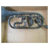 8 ft Fiberglass Dinghy with Oars, Cushions, Anchor Vintage Running Light, Starboard Light 3-inch Trash Water Pumps, 3 HP Johnson Outboard Motor 8 HP B & S Engine Electric Hoist Large Boat Anchor Yachtsman Boat Anchor 3 BRASS Boat Propellers 2 Down Riggers Antique Flare Pistol with Flares 2 LARGE ! Forged Brass Pier or Ship Cleats Large Galvanized Cleats, 6-8-10 inches 2 Bronze Cleats 7-and 8 inches Boat Deck Plate, Brass Pole or Flag Holder Fishing Reels Fishing Rods Garden Tools Weed Eater w/Saw Blade, Masonry and Cement Finishing Tools 4 HP Vac Gaff Boat Hook Oxygen Acetylene Cart Weight lifting Set Railroad Lantern