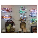 TEXACO Thermometer Hats, Decals 2 Backlit # 28 Car Signs 6 NEON Signs: Harley Davidson, Rt 66, Deer Head, Billiards, 55 Chevy, “It’s 50’clock Somewhere” 2 Beer LOGO Wall Clocks TEXACO Die Cast Lt Edition Planes, Oil Trucks, 1030’s Trucks