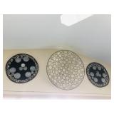 Additional living room furniture includes a LaZboy loveseat, recliner, arm chair along with two sets of designer end tables from Dialogica by Savarese. Most of the decor is Modern Style including metal wall sculptures, hanging lights and signed/numbered art pieces.
