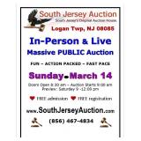 ♥ March 14th – Sunday ♥ " In – Person " Outside Live AuctionAuction starts: 9:00 am (doors open 8:30am) Preview: Saturday, March 13th from 9-12 pm South Jersey Auction, 26 Repaupo Station Road, Logan Township, NJ 08085 (856) 467-4834 Wear your mask and meet me in the field for a FANTASTIC auction Furniture, Tools, Glassware, Kitchenware, Glassware Collectibles, Dock, Field, Tent & MORE 50+ Estates to be auctioned in ONE day! |