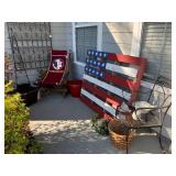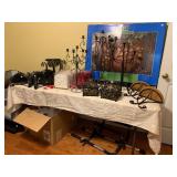 Men’s Size Large, 36” waist clothing Large amount of Christmas Decor, Lights, Light Up Trees, Ornaments. One table of Fall decor, and some Easter Oak Office Desk with Hutch, Matching Oak Book Shelf, Books, Printers, Office Supplies, Bose Companion II Multimedia Speakers, Shredder Rectangular Glass Top Patio table and 4 chairs, planting pots, patio decor, concrete bird bath |